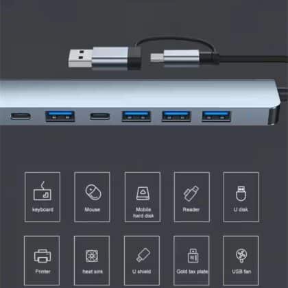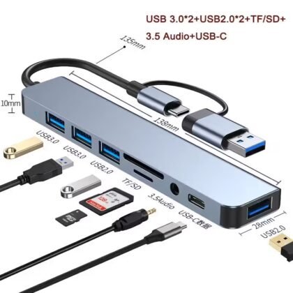 USB 3.0 5/8 Port Hub OTG Adapter 5Gpbs High Speed USB 3.0 2.0 Splitter 3.5 Audio